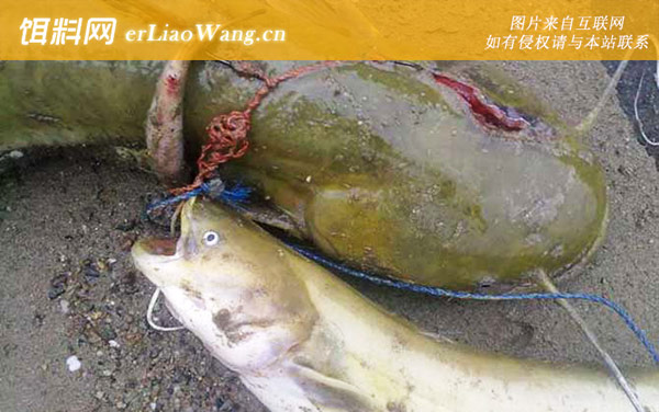 4、大口鲶:大口鲶是鲶科鲶属鱼类,别称六须鲶、叉口鲶、鲶巴朗等,主要分布在长江以南各大水系中,常见个体2~5千克,最大个体可达50千克,肉食性,主要以鱼、虾、水生昆虫等为食,人工养殖也吃畜禽内脏、下脚料等。